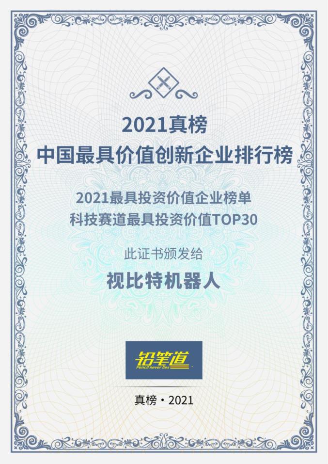 近期,铅笔道以企业是否有着扎实的基本面、是否得到资本的高度认可、是否创造良好的商业价值对其综合实力进行多维评选,坚持以数据为依据、事实为标准,评选出相应榜单。视比特以在AI及3D视觉领域的强大研发实力与创新能力得到真榜•铅笔道评选的高度认可,斩获“2021中国最具创新品牌影响力榜单TOP30 ”及科技赛道“最具投资价值企业榜单TOP30 ”两大奖项。
