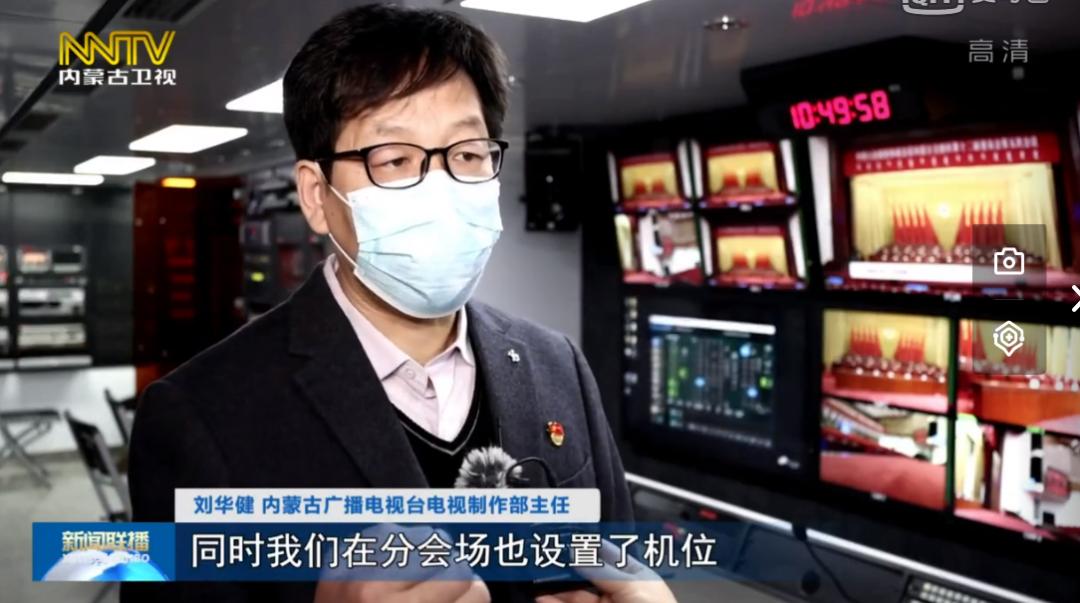 刘华健 内蒙古广播电视台电视制作部主任:现场采用了8个机位,多角度全方位展示现场情况,同时我们在分会场也设置了机位。我们在传输过程中采用了光缆、卫星,以及4G背包3路信号。