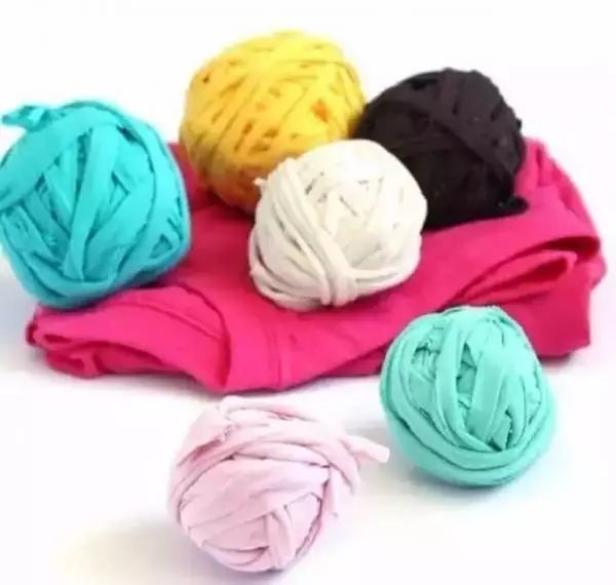 然后将衣服剪成条状,像缠毛衣线一样缠成团,备用。