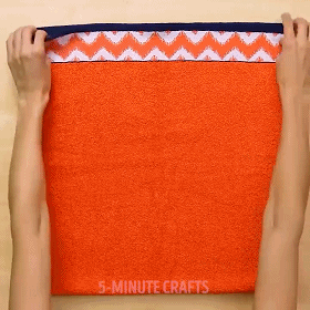 第一步:毛巾对折,两侧边边缝好。