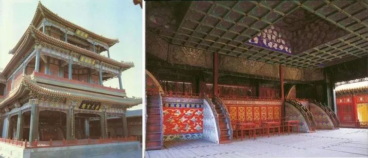 为方便演戏、看戏,清廷在紫禁城中的宁寿宫、重华宫、长春宫、漱芳斋等处,建10余座大、中、小戏台。在宫外的西苑(中、南、北海)、西郊各皇家苑囿与行宫中,也均搭建戏台。其中,建于宁寿宫中的畅音阁戏台最大。