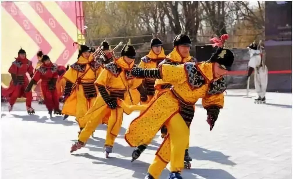 “转龙射球”或许是冰嬉中最壮观、最有趣的竞技游戏。侍卫们先在皇帝冰床附近,搭一座旌门,门上、下各悬挂一球, 上曰“天球”,下曰“地球”。各旗将士各为一队,每队前有3人,1人擎旗为先导,2人执弓矢,跟在后面,在冰上盘旋滑行;各旗其他参赛者,或擎旗,或持弓矢, 呈一字纵队,尾随滑进。8支队伍宛若八条游龙,在冰面上盘旋滑行。每队通过旌门时,持弓者拉弓搭箭速射,一射天球,一射地球。射毕,滑行旋转而归。凡射中者,皇帝皆予赏赐。“打滑挞”,是指每年冬至后,内务府派人在宫中空地上,用水浇成一座高约三、四丈,一面呈斜坡状,一面呈阶梯状的冰山。参加“打滑挞”者从阶梯上山,然后沿斜坡面滑下。为增加竞技难度,有时,表演者奉命,身裹猪毛皮,履直身体,从山顶急速滑下,可谓惊险刺激。