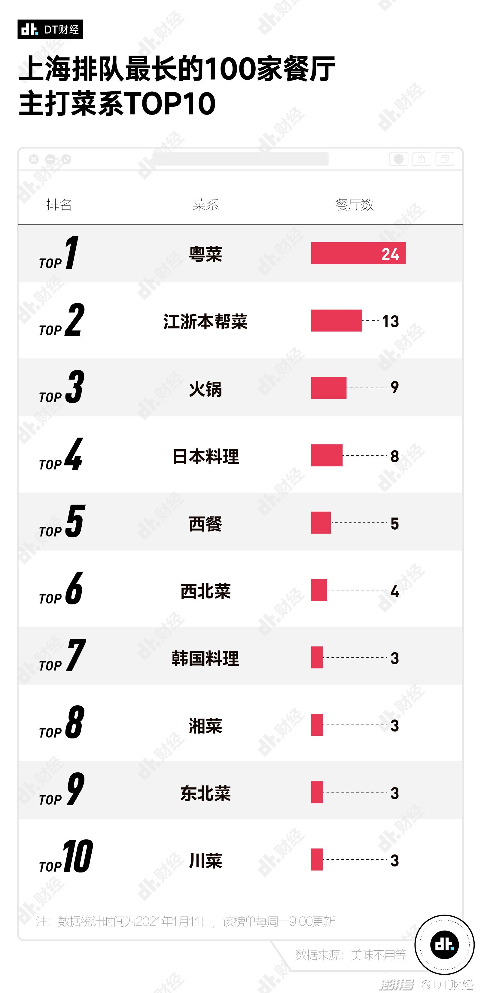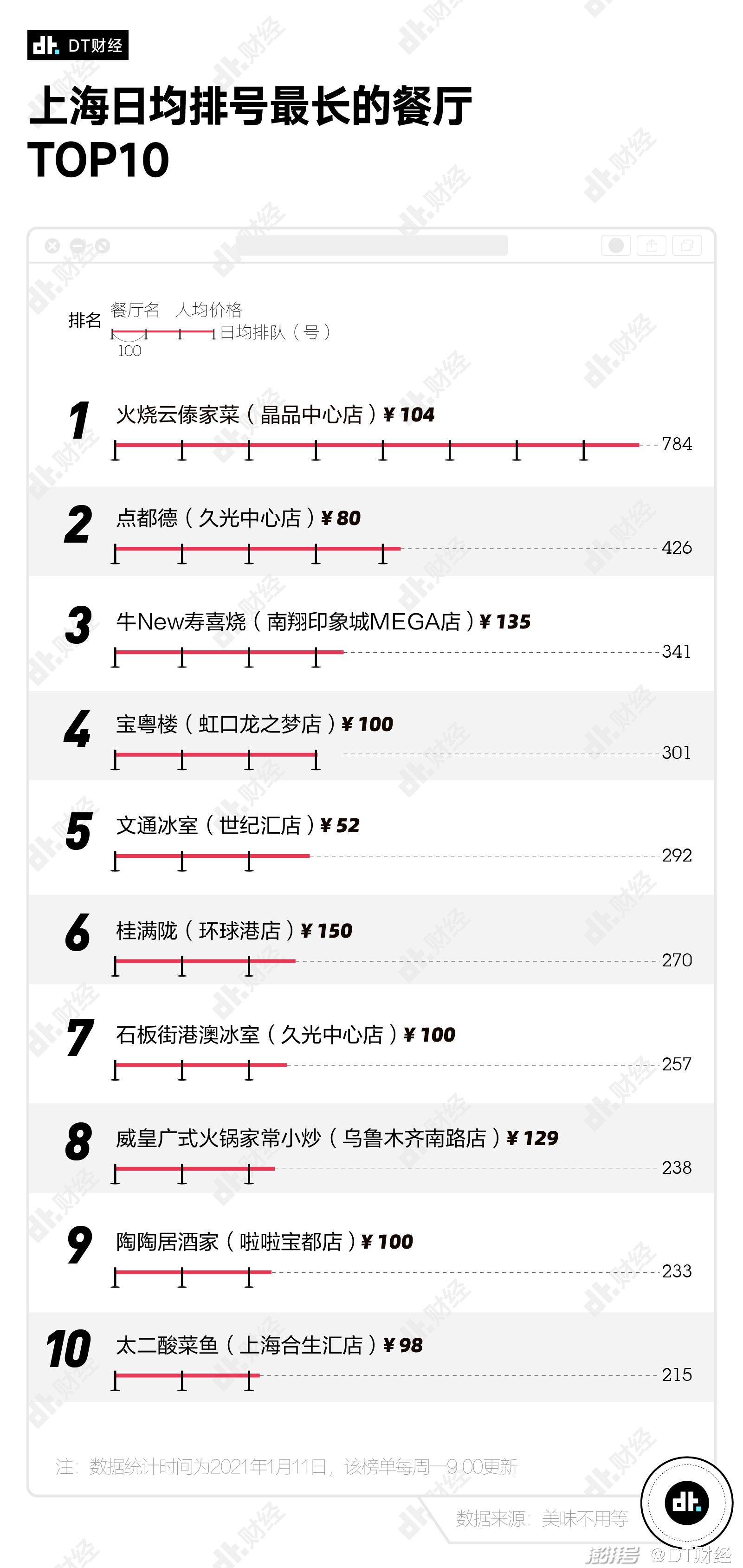 (需要特别说明的是,排队榜单来自美味不用等APP,因为市占等问题,部分热门餐厅未被收录。)