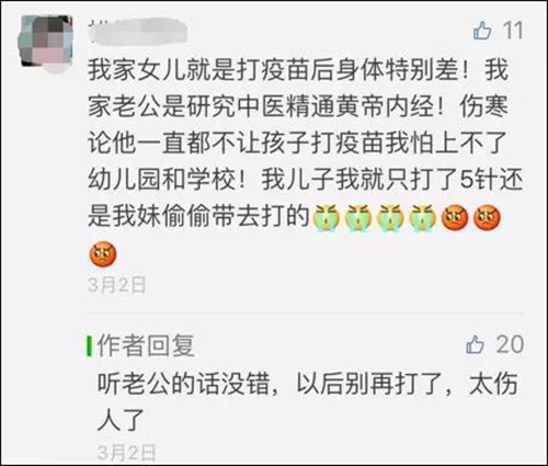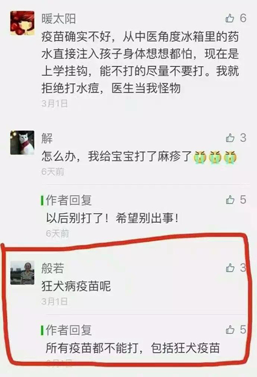 最近,有条耸人听闻的消息在朋友圈、微博传开。微博认证用户@急诊夜鹰(急诊医生,美国心脏协会急救培训导师)在微博上发出了几张微信公众号“关注疫苗安全”的文章评论截图,其内容是该公众号2月27日发布的一篇已经被鉴定为谣言的文章《一名有良知的疫苗工作者的心声!所有父母必看!为了孩子的健康,请远离疫苗!》。目前,该造谣公众号已经查询不到,相关人员已被有关部门带回调查,但事件在网上并没有平息。