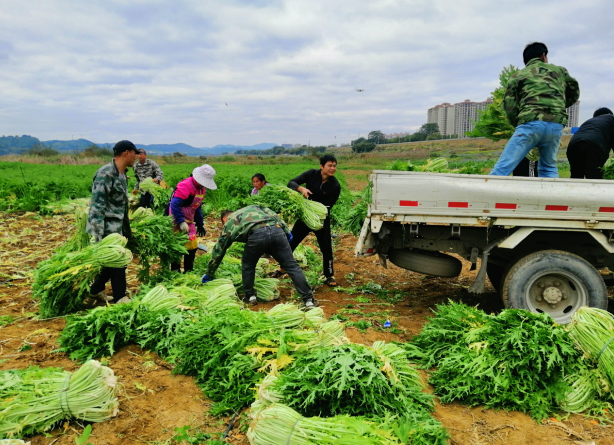 据张志坚介绍,收割雪里蕻时,每天基本都要请20多名村民帮收割、打包、装货等。刘先生说,不想出去打工了,如今在雪里蕻基地打工不仅可以照顾到家里,而且每天还可以直接结算工钱,一举两得。
