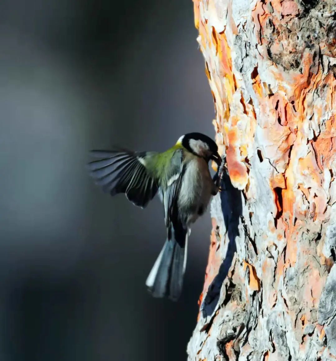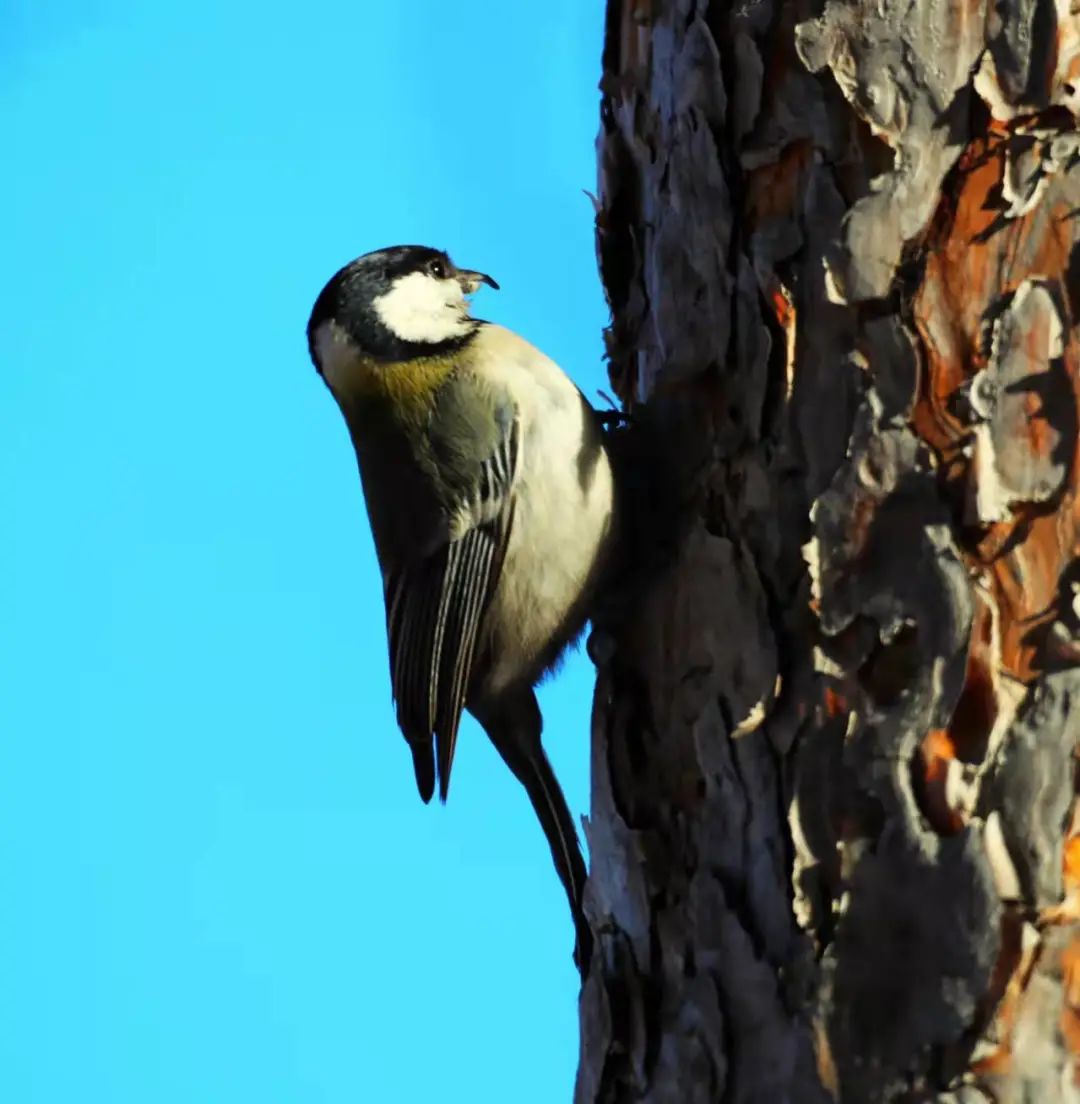 大山雀(学名:Parus major),中小型鸟类,体长13~15厘米。整个头黑色,头两侧各具一大型白斑。上体蓝灰色,背沾绿色。下体白色,胸、腹有一条宽阔的中央纵纹与颏、喉黑色相连。栖息于低山和山麓地带的次生阔叶林、阔叶林和针阔叶混交林中,也出入于人工林和针叶林。性较活泼而大胆,不甚畏人。啄木鸟