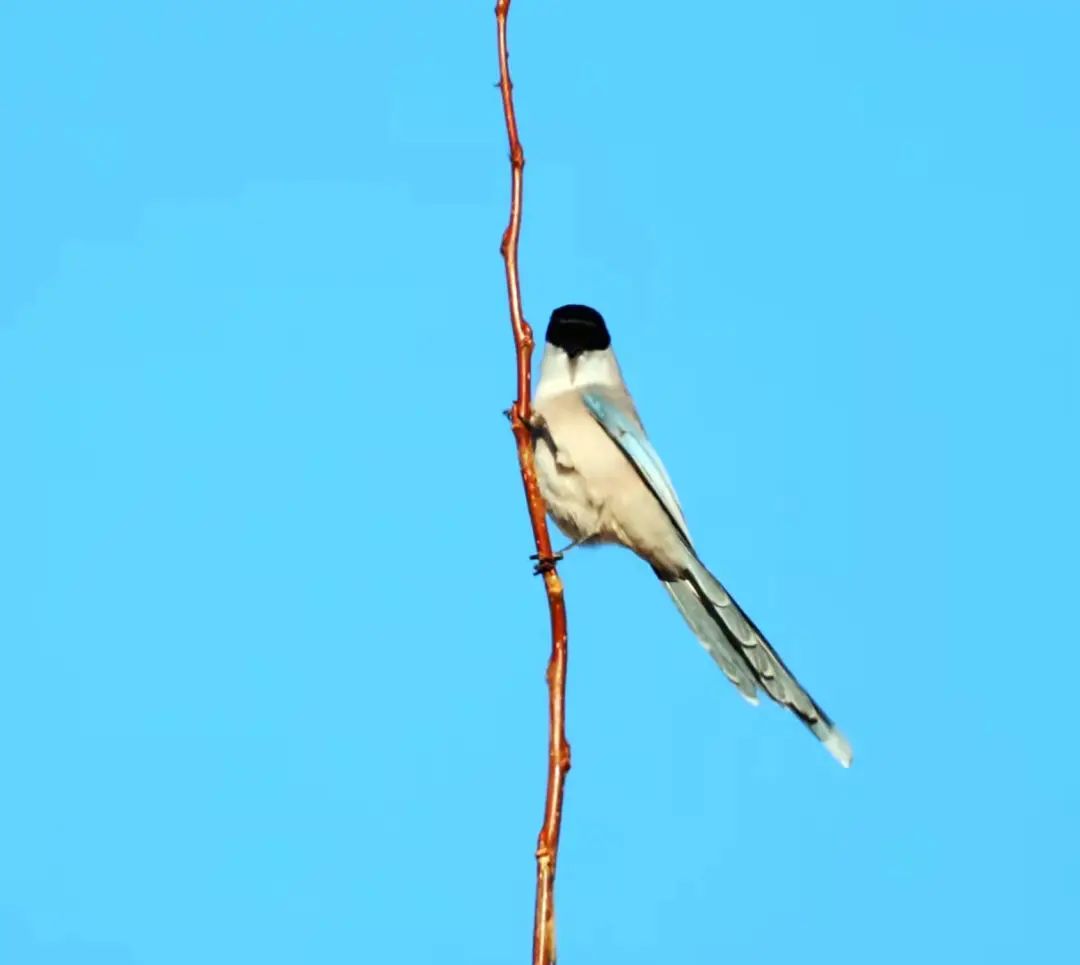 灰喜鹊(学名:Cyanopica cyana)属雀形目、鸦科的中型鸟类。外形酷似喜鹊,但稍小。体长33-40cm。嘴、脚黑色,额至后颈黑色,背灰色,两翅和尾灰蓝色,初级飞羽外翈端部白色。尾长、呈凸状具白色端斑,下体灰白色。外侧尾羽较短不及中央尾羽之半。灰喜鹊是中国最著名的益鸟之一。灰喜鹊是平原和低山鸟类,常见于道旁、山麓、住宅旁、公园和风景区的稀疏树林中,常十余只或数十只一群,穿梭于树林间,不喜久留,似游击式活动,骤然成群飞向这里,又突然飞向别处。蜡嘴雀