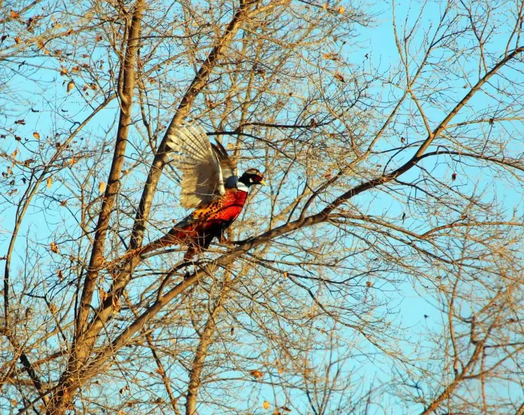 雉(zhì)鸡,俗称野鸡、山鸡,体形较家鸡略小,但尾巴却长得多。雄鸟羽色华丽,分布在中国东部的几个亚种,颈部都有白色颈圈,与金属绿色的颈部,形成显著的对比;尾羽长而有横斑。雌鸟的羽色暗淡,大都为褐和棕黄色,而杂以黑斑;尾羽也较短。常见的麻雀、喜鹊、乌鸦