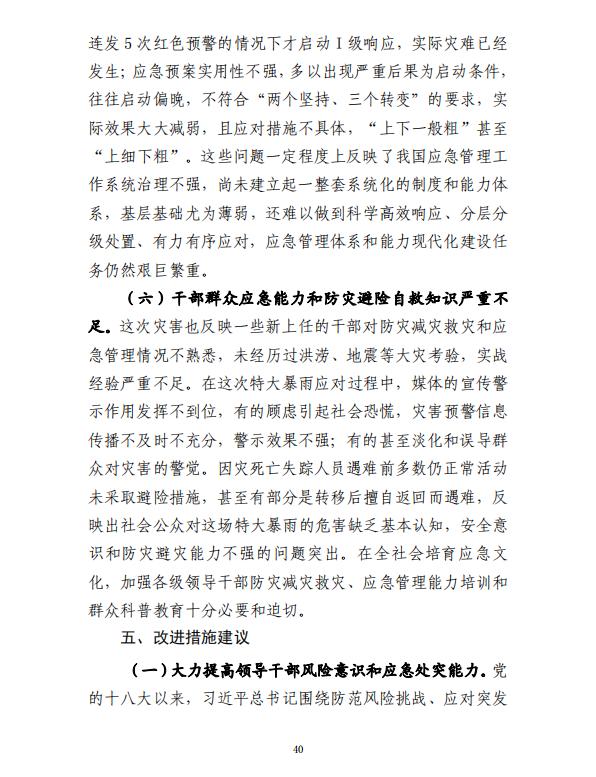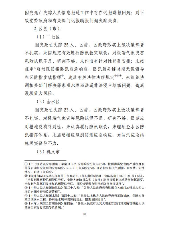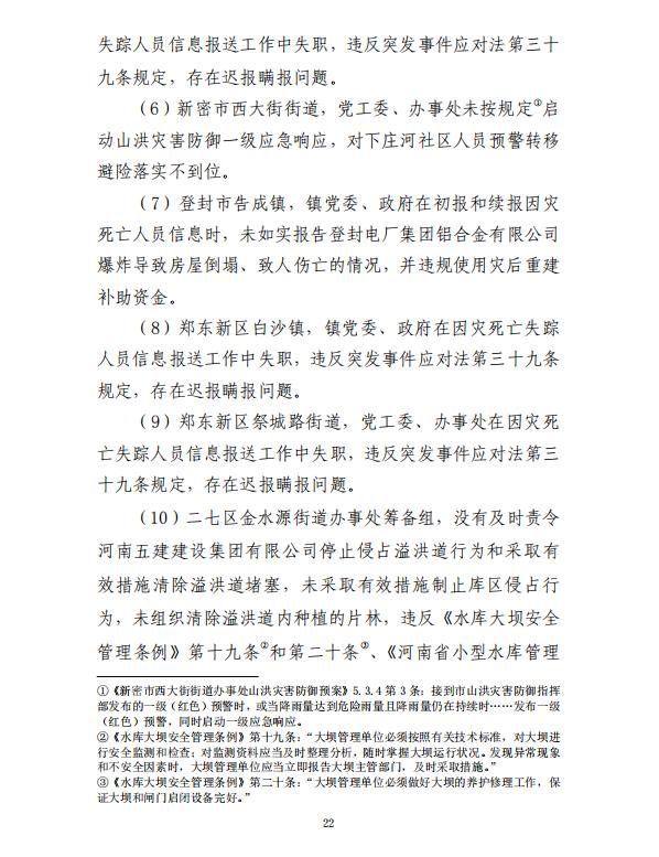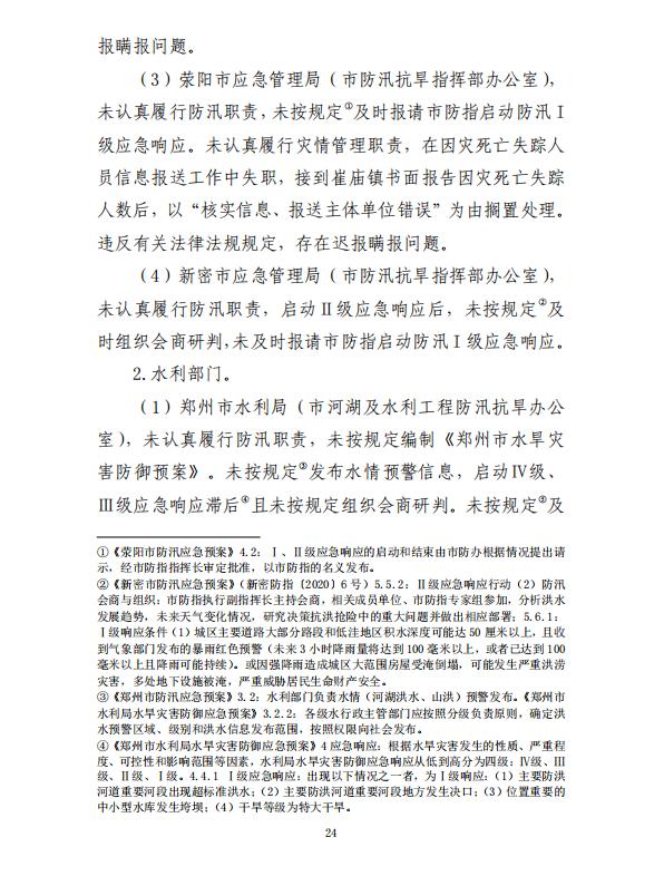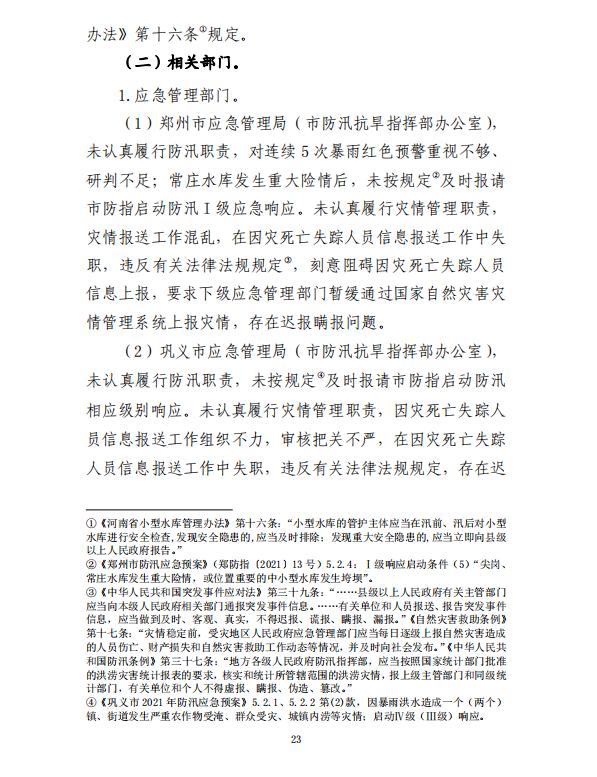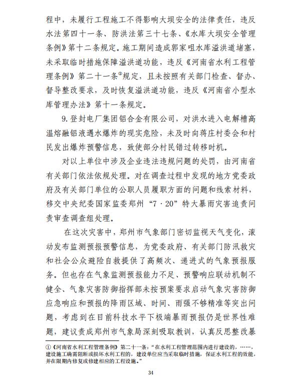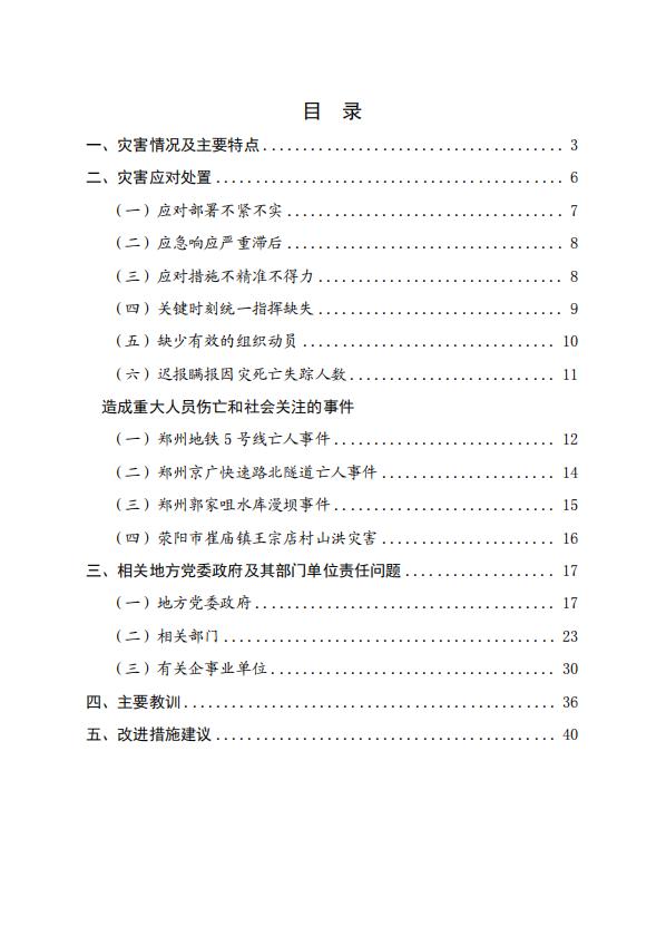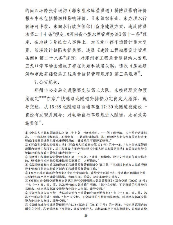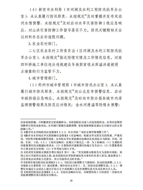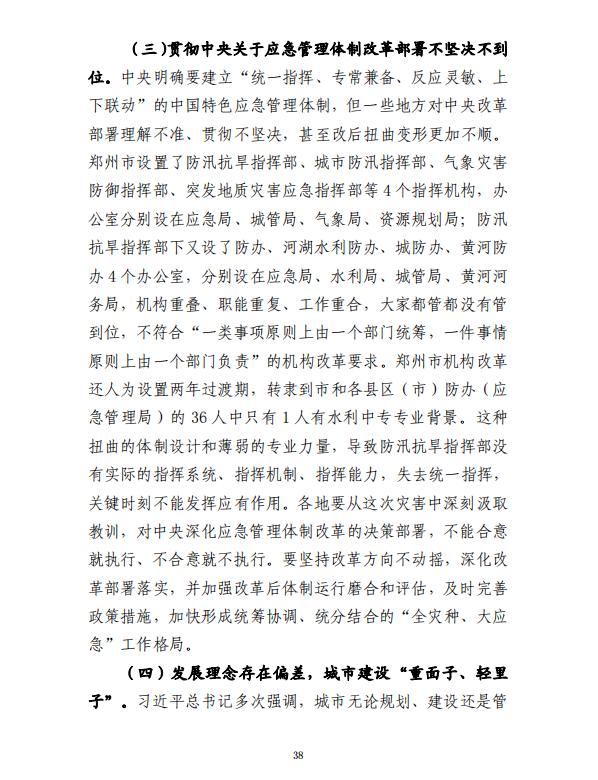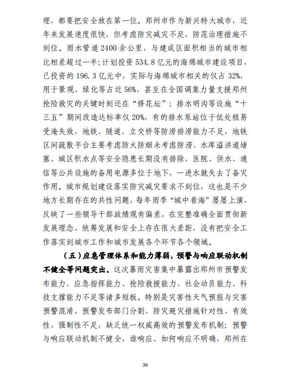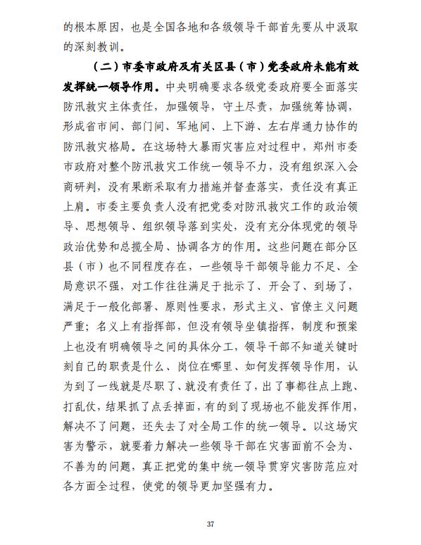 河南郑州“7·20”特大暴雨灾害调查报告全文如下