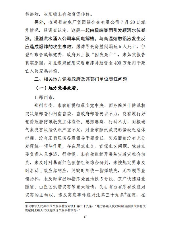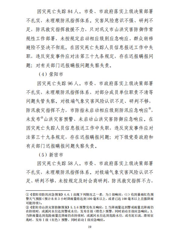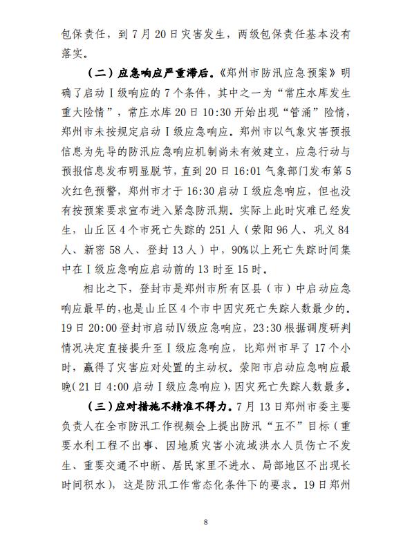 原标题:《380人死亡失踪!8人被捕!河南郑州“7·20”特大暴雨灾害调查报告全文》