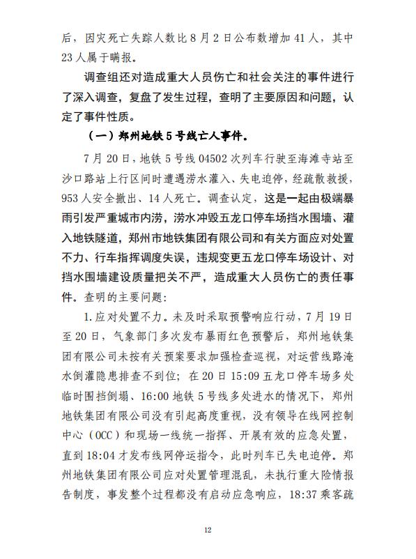 380人死亡失踪!8人被捕!河南郑州“7·20”特大暴雨灾害调查报告全文