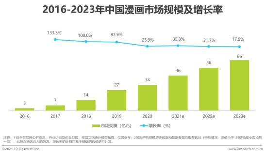 漫画方面,随着国内漫画创作群体日趋扩大和成熟,中国漫画市场规模在2020年达到34亿元,并在未来3年保持15%以上的高增长率。艾瑞咨询认为,漫画付费阅读基础上,漫画改编影视剧和动画受到观众认可,原生漫画IP的价值将会持续释放。动画方面,2020年中国动画播映市场规模已达205亿元,艾瑞咨询认为随着国创动画和国产动漫的质量提升,国产动漫不仅在播映端能够获得更多广告和订阅收入,还能驱动产业链下游的内容改编和实物衍生等众多衍生行业。