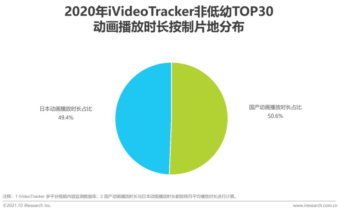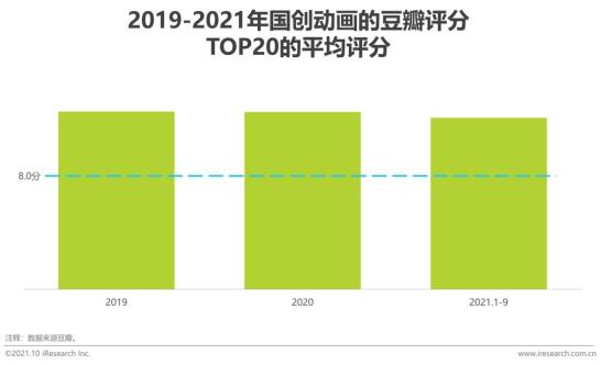 随着IP不断丰富,动画创作人才、动漫制作能力逐步与国际接轨,国漫已经在国内动漫播放上处于主流位置,在海外作品更有优势的头部作品榜单上,也实现了反超。根据iVideoTracker的数据,2020年按照独立设备数排列的TOP30中,国产动画作品月均播放时长已经超过了海外作品。除了播放时长超过日本动画以外,国创动画的质量也受到观众们的认可,2019年-2021年前9个月,评分最高20部国创动画的平均分在8分以上。