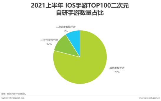 中国庞大的二次元用户给二次元游戏打下了坚实的用户基础,而二次元游戏产业的快速增长,还得益于原创二次元游戏的快速发展。阴阳师、明日方舟、原神等原创二次元游戏,将优秀的二次元美术能力跟玩法创新有机结合,实现了快速增长。头部游戏数量也可以看出二次元原创游戏良好的发展态势,在TOP100的二次元手游中,有12%为二次元原创手游,高于IP改编手游(9%)。