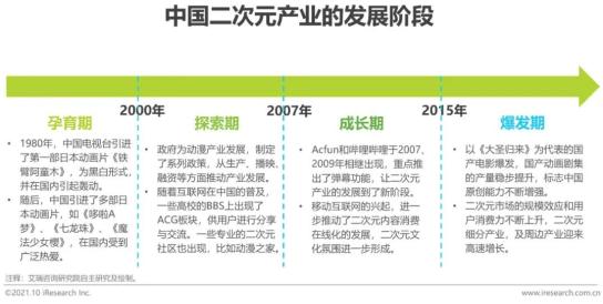 二次元产业在中国的发展历程在步入爆发期后,中国二次元产业正朝成熟发展阶段前进