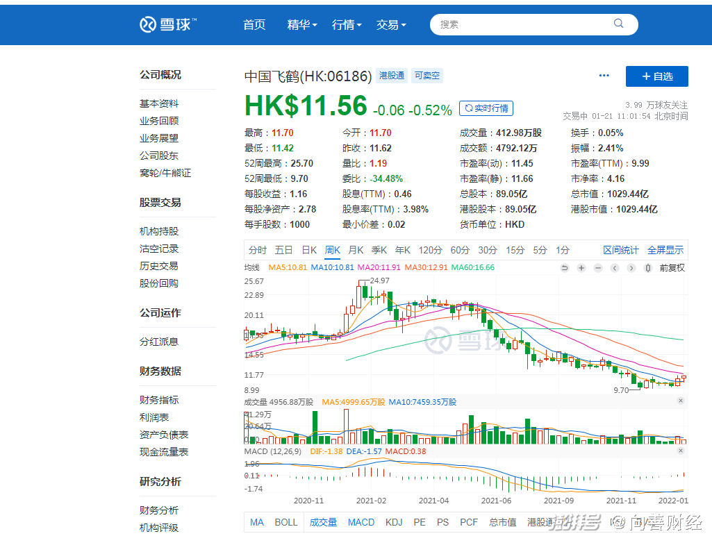 从2021年1月开始,中国飞鹤的股价便一路震荡走低,最低甚至跌破10港元/股,总体跌幅也超过60%,市值蒸发更是接近1000亿港元。