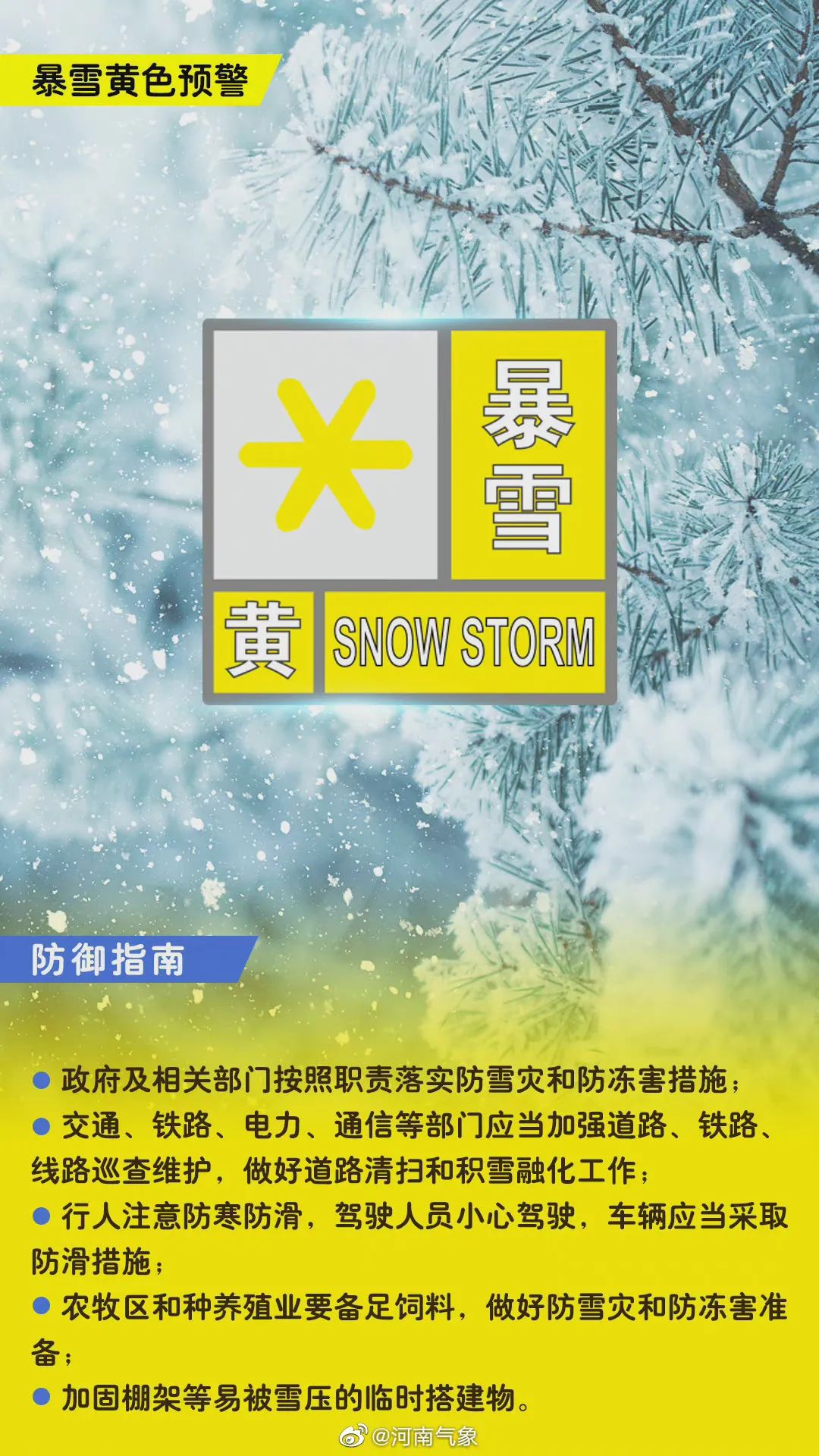 今晨7时河南省气象台连发道路结冰、暴雪预警