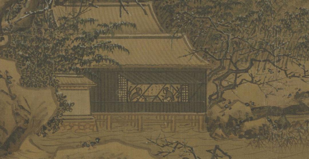 南宋 夏圭《梅下读书图页》(局部)能够在冰天雪地中寻得属于自己的那份安宁自然是一件好事,但是并不是任何时候都能获得安宁的,况且有人喜静也有人喜闹。在冬日里烫一壶酒,与来访的客人好好聊上一聊也是一个不错的选择。南宋夏圭的《雪堂客话图》即是一例,画中村舍被皑雪覆盖,被树木萦绕,下临河流,河上还有一小舟漂浮,应是来访客人所乘之舟,画中的环境幽雅,两人坐于窗前,正热烈地商讨着什么。