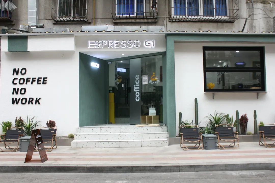 而在前方不远处,还有一家咖啡店与温馨的潺媛水货截然不同,这里,我愿称其为工位咖啡,Espresso G1。
