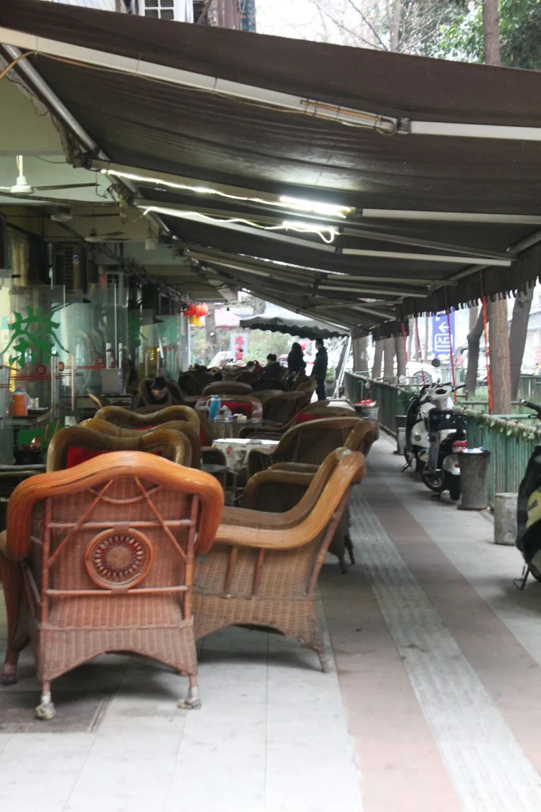 街边的遮阳棚下,全是比家里更好入睡的椅子,一杯茶放桌上,等着牌友们到齐,慢慢悠悠,不催不赶。根本不用去各种公园的茶馆打挤,楼下的茶牌一条街,就能享受到舒舒服服的退休午后生活。