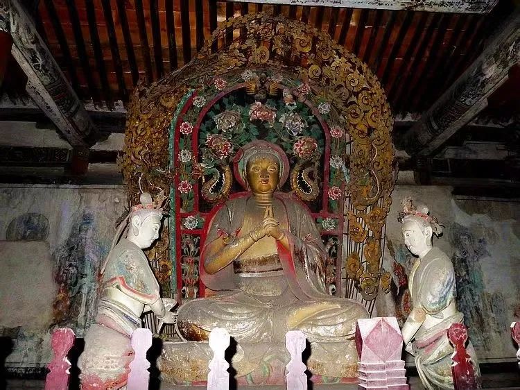 因此说,万佛殿在建筑功能和结构艺术方面达到了高度统一。与同时期的建筑一样,保留至今的五代彩塑作品更为奇缺,除敦煌莫高窟中尚有少量外,万佛殿内的彩塑是全国寺观庙堂中保存至今的唯一五代作品,在我国雕塑史上占有重要的一页。