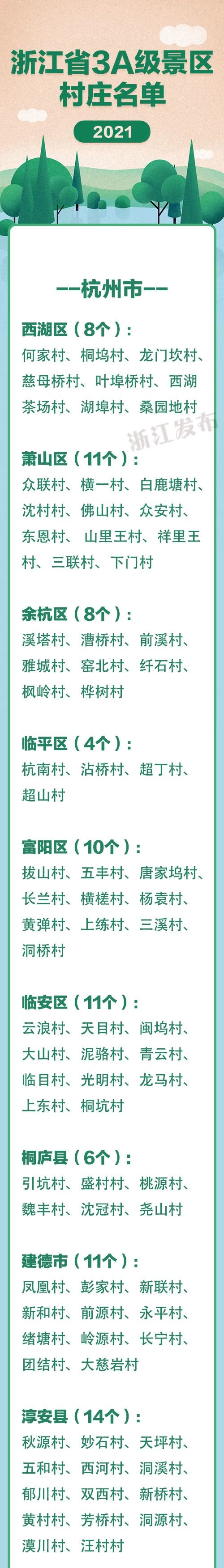 近日,浙江省文化和旅游厅先后公布了2021年浙江省4A级景区城、5A级景区镇以及省3A级景区村庄名单,杭州多地上榜。一起看看咱们的家乡有多美!