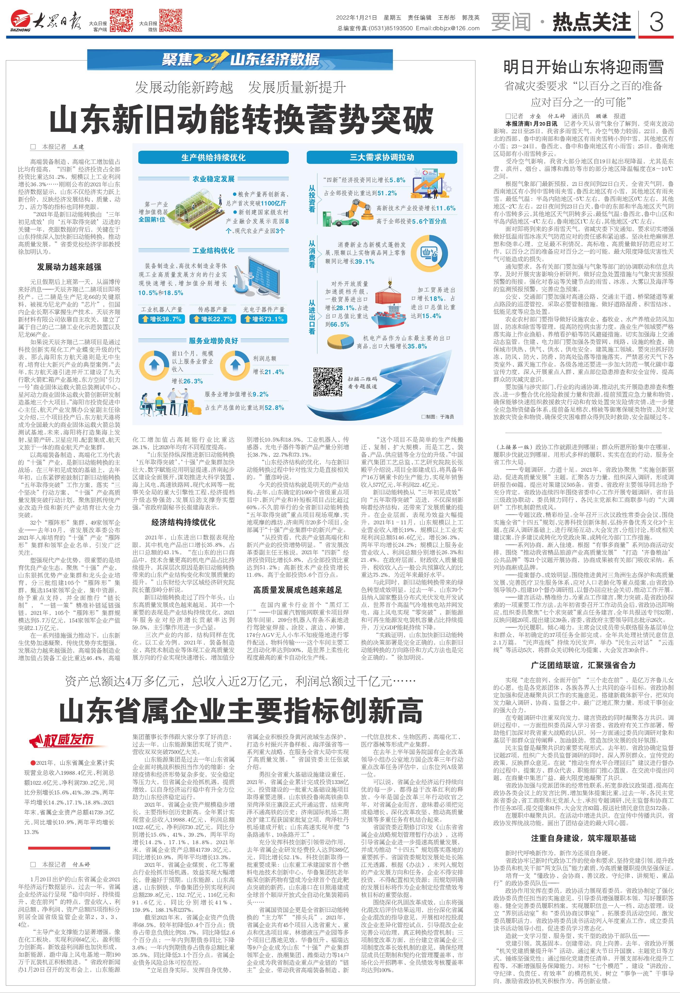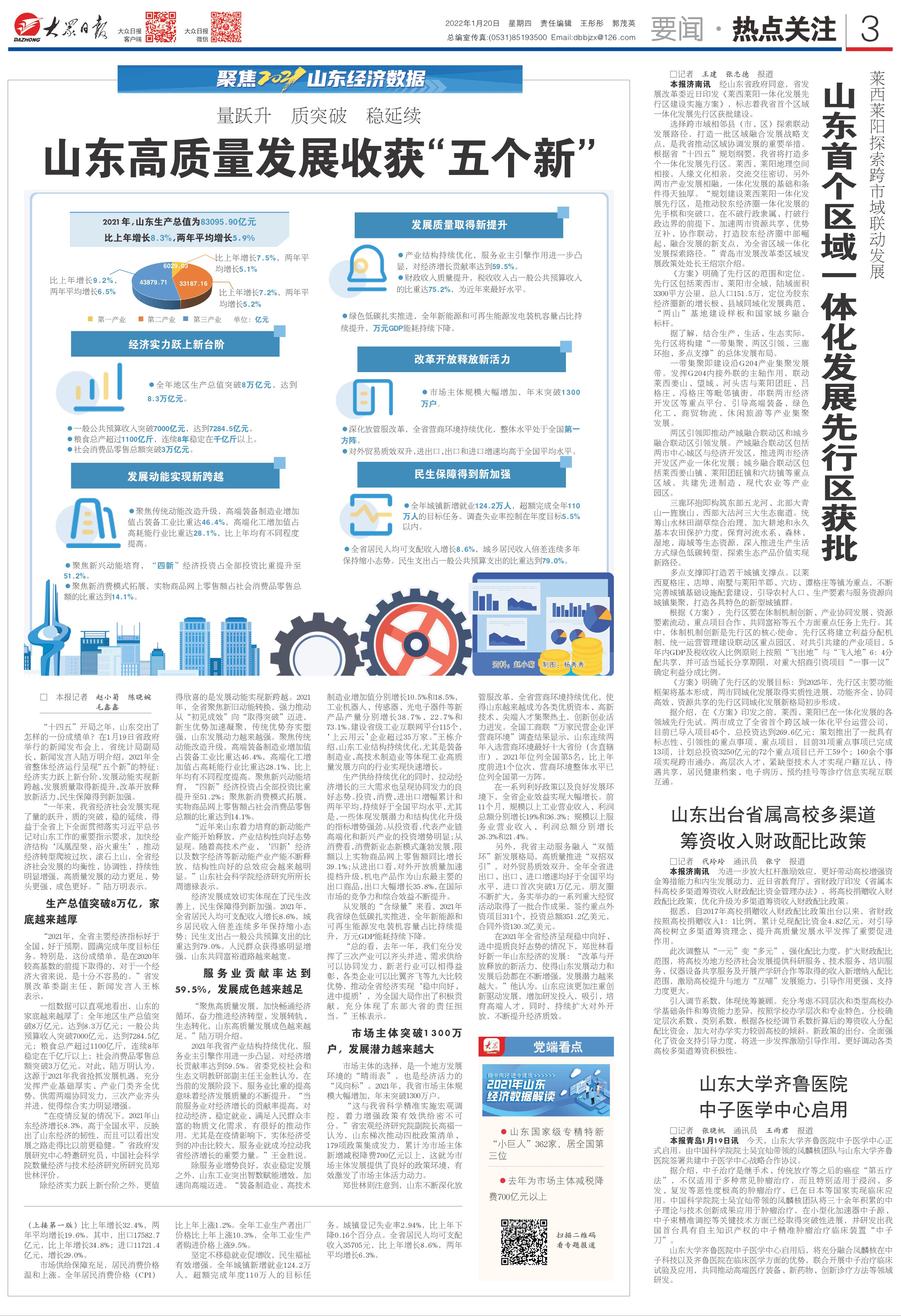 聚焦2021年山东经济数据,大众日报连发6篇重磅报道