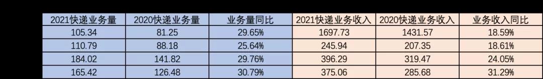 近日,A股四大快递企业圆通、申通、韵达、顺丰相继发布2021年12月业绩快报,全年的经营数据也相当于浮出水面。