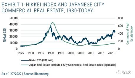 日本1989年双重泡沫破裂带来的经济影响到如今仍未消弭,图1显示日本股市与房市至今仍未回到1989年的巅峰。