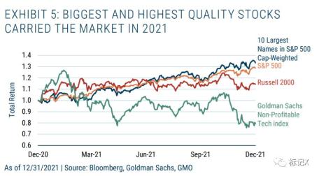 图:2021年蓝筹引领市场GME、AMC、狗狗币以及超过三分之一的纳斯达克股票已经从高点下跌50%。比特币下跌40%,而我的持仓Quantumscape 13个月前市值还超过通用汽车(1929年都没这么疯狂),现在已经从2020年12月的高点下跌83%。