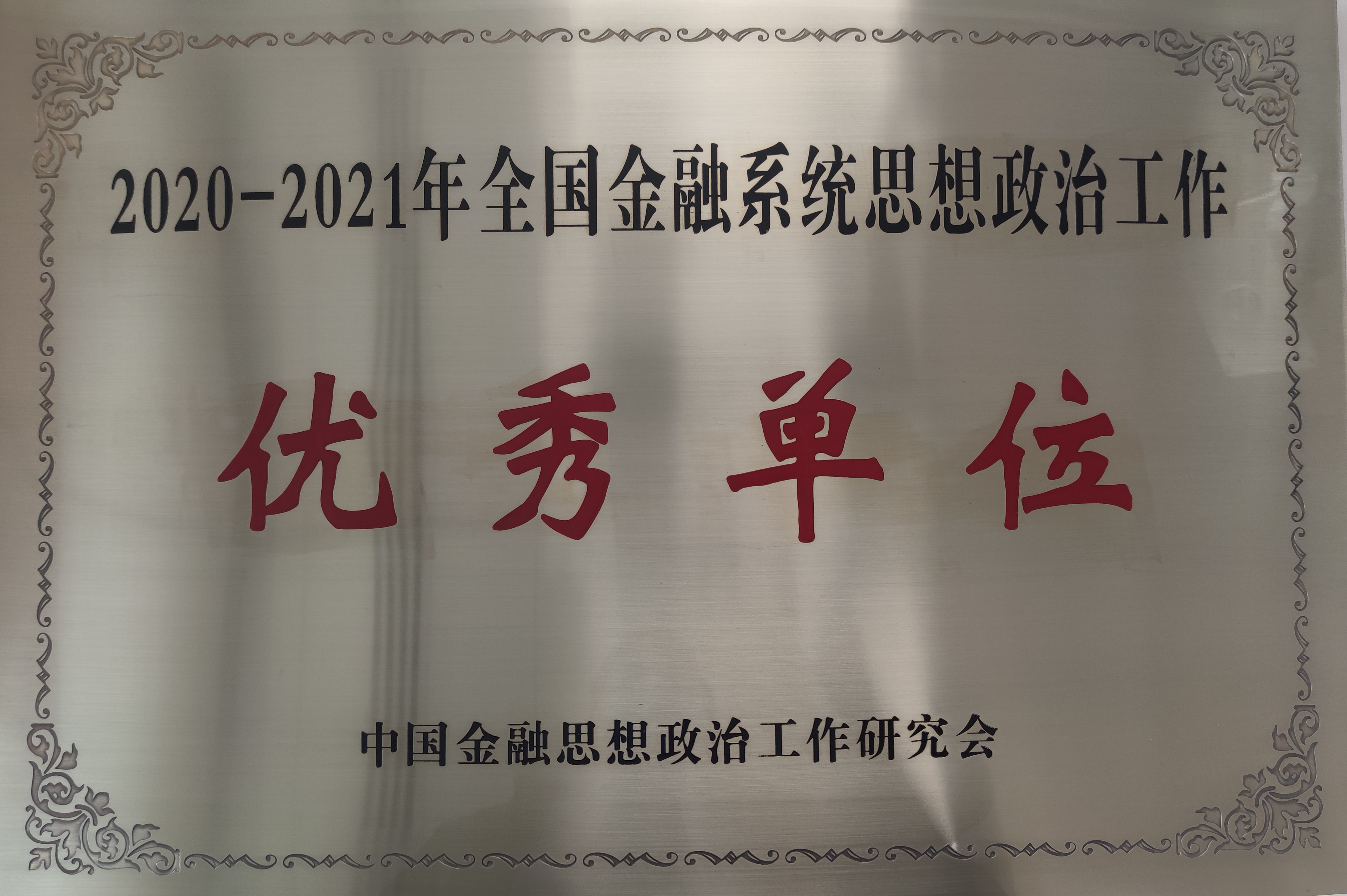 荣获“2020-2021年全国金融系统思想政治工作优秀单位”称号