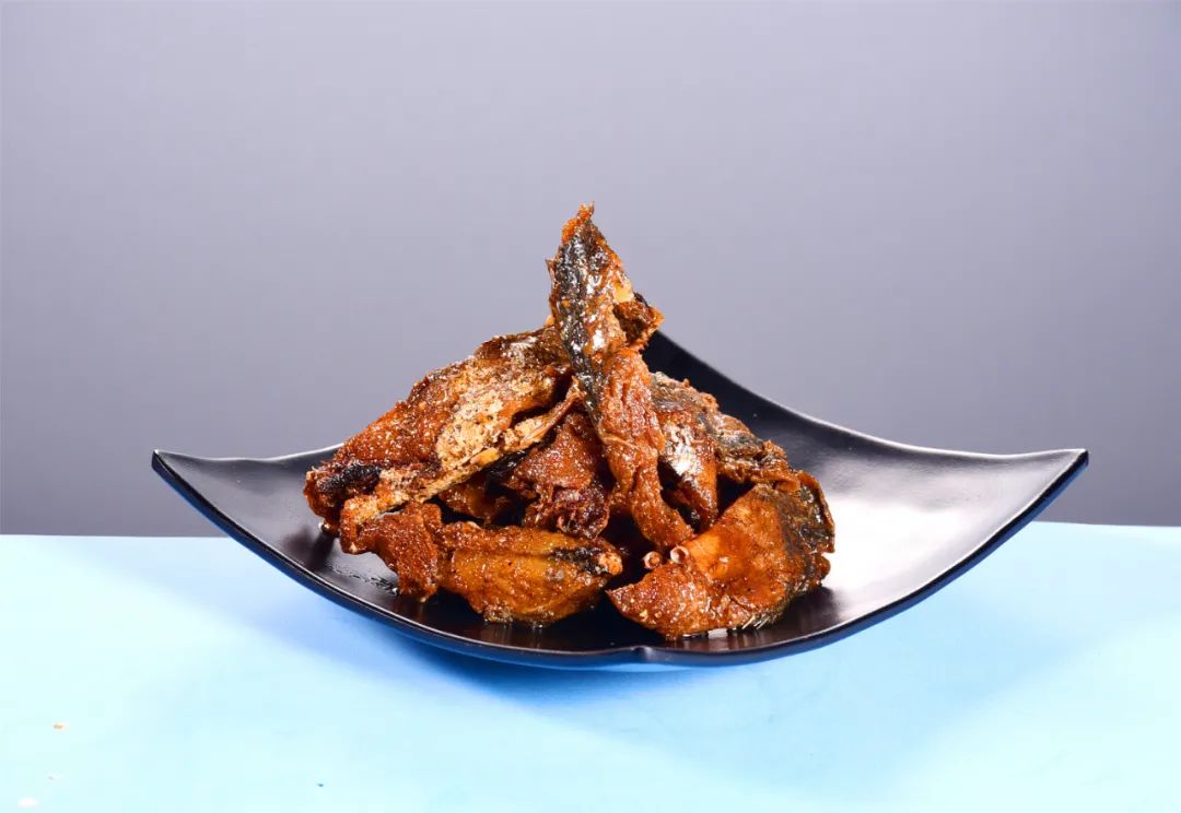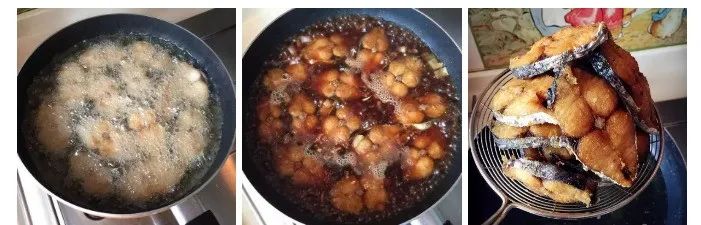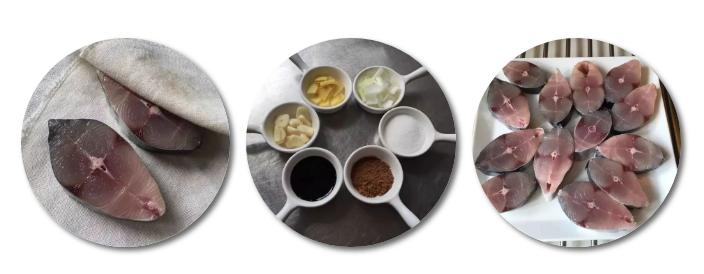 图:福在福山熏鲅鱼在做法上也很独特,先将鲅鱼厚切成均匀的片,经过充分的腌制,下锅炸至两面金黄后捞出,浸泡在调好的酱汁内放凉就好啦~这样做好的熏鲅鱼不仅滋味浓郁,而且肉质紧实,连鱼骨都炸到酥!冷食效果更佳!