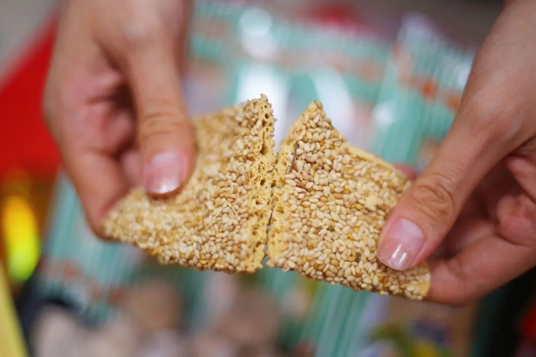说到儿时的冬季美食,一定少不了酥脆香甜的芝麻糖!一口咬下去,芝麻的香与板糖的甜,在口中融合成芝麻糖独特的味道!