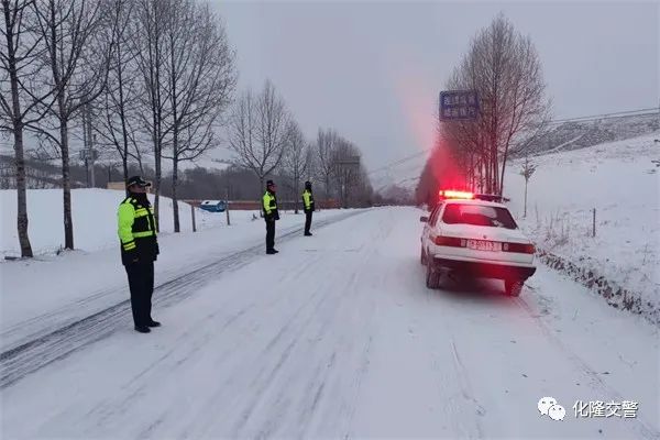 1月27日凌晨,化隆辖区大面积的积雪,给车辆和行人出行带来了交通安全隐患。雪情就是警情,化隆县公安交警大队迅速启动恶劣天气应急预案,大队民辅警全员上岗,最大限度将警力投放到路面上。采取定点执勤与流动巡逻相结合的方式,加大路面管控和指挥疏导力度,防止因雪融结冰路滑造成拥堵和交通事故发生,确保辖区道路交通秩序的安全、有序、畅通。