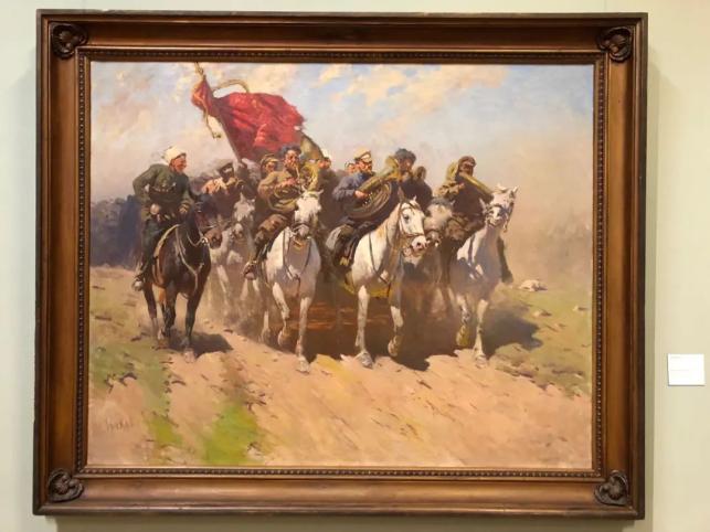 藏于特列季亚科夫画廊(新馆)的油画作品:红军第一骑兵军重回战场后,李富清被派遣到苏俄将领布琼尼率领的红军第1骑兵军第6师第33团,担任侦察班副班长。10月,他所在的第33团在沃罗涅日郊区与邓尼金部队激战。月底,红军解放了沃洛涅日,邓尼金残余部队南逃。11月,第1骑兵军将邓尼金的阵地撕开。次年1月,红军解放了罗斯托夫。两个月后,邓尼金乘船从黑海逃遁。