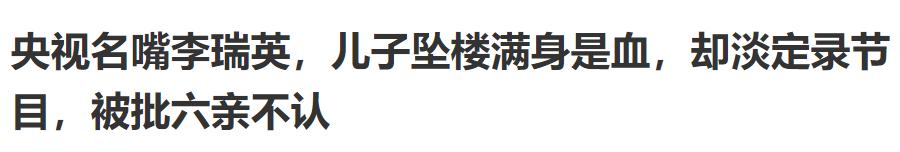当时,坚持把节目录完的她,看上去并没有受到什么影响。对此有网友说:儿子都坠楼了,还有心思录节目,这是个负责的母亲吗?简直太六亲不认了吧!因此,李瑞英那段时间也卷入了舆论的风波中。