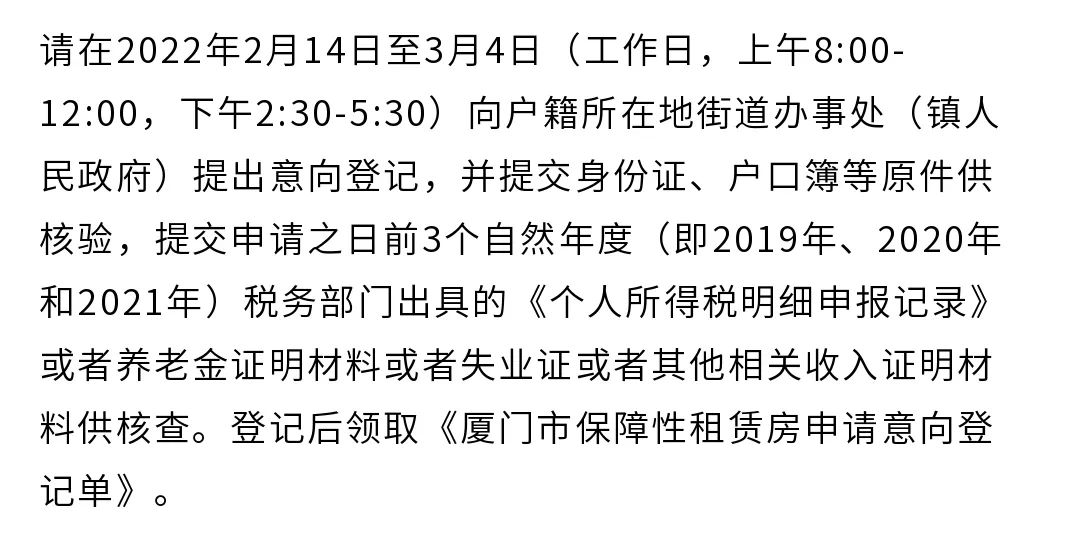 (三)上述申请条件为基本申请条件,其它包括家庭人口、婚姻、户籍、收入(资产)、住房等与取得保障性租赁房轮候资格相关的申请条件详见《厦门市社会保障性住房管理条例》《厦门市社会保障性住房管理条例实施办法》的具体规定。