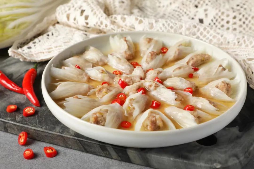年夜饭来一道肉酿白菜卷,白菜的甜和猪肉的鲜完美搭配,有荤有素,有福有财。除夕吃一口,新年里“八方来财”。