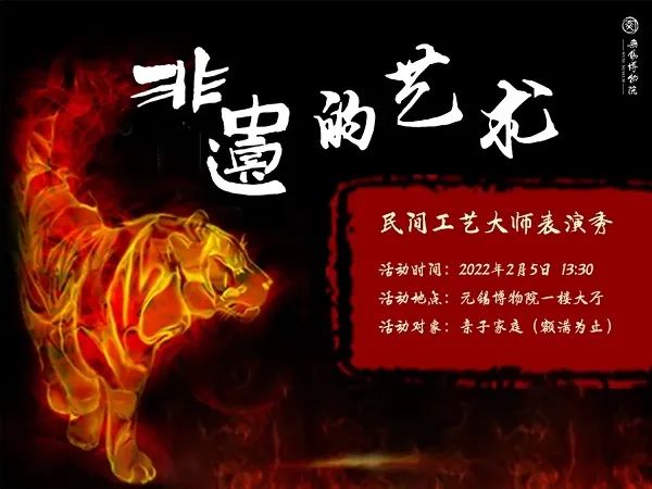 锡博“我们的节日”新春活动上线了!除了多个重量级展览,结合中国年文化习俗、生肖虎元素来解锁新春文博密码,给你一个花样虎年!雕版印刷、新春剪纸、羊毛毡挂饰、惠山泥人彩绘,还有工艺大师表演课,满足大家对知识的好奇与动手体验的愿望。