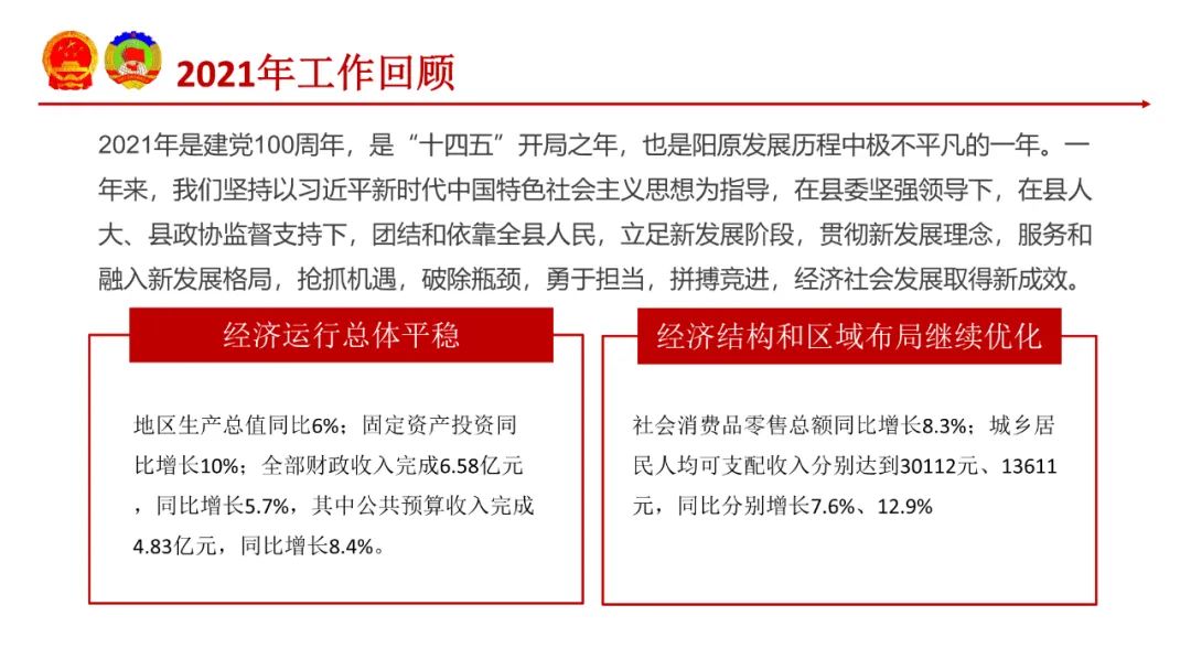 2021年12月30日,中共阳原县第十二届委员会第二次全体会议隆重举行,县委书记郝燕飞代表中共阳原县第十二届委员会向大会作了题为《牢记百年奋斗史 砥砺奋进新征程 奋力开创建设富裕文明生态宜居平安幸福美丽阳原新局面》的报告。