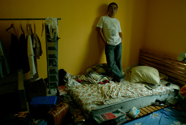 生活中的第一现场往往难以捕捉到,胡杨的第一本摄影集是《上海人家》, 2005年出版,这在许多人看来无法完成的选题,更令人惊讶的是,《上海人家》的销售数字至今已经超过25万册。胡杨注意到大城市里,贫富差异悬殊开始拉大,这种潜在的涌动很难用文字去描述,图像更直观。胡杨直接拿着相机敲开了500多户人的家,他拍摄了6 种人的家,富人、中产、穷人、外国人在上海,外地人在上海,上海本地人家。同时为每家人设置了三个问题:你现在生活状况如何?你最大的幸福(或者心愿)是什么?你最大的痛苦是什么?他拍下这些人在家中放松的样子,聊生活或生存感受。