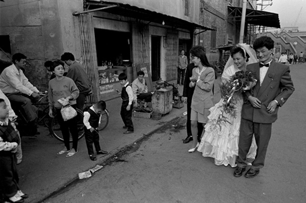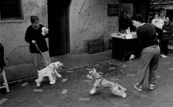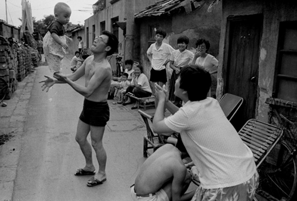 这样的光景不复存在,只能在照片中寻得,改革开放后的30年里,弄堂发生巨变,弄堂里的人也改变了。1981年胡杨被多伦多大学录取,父母以年迈为由留住了他,之后舍弃诸多机会后,他做过木工、记者、编辑,始终沉迷摄影,进行着漫长的拍摄。胡杨从1980年开始拍《上海弄堂》,漫长而全面地勾勒出了这一切。80年代,一件皮尔卡丹西装是“登样”的象征,西风吹来,弄堂里的时髦份子蠢蠢欲动,他们中有人会光着膀子穿西装,标签绝对不撕掉;看完美国科幻连续剧《大西洋底来的人》,人们戴起蛤蟆镜,镜片上贴着的“Made in Hongkong”比蛤蟆镜还惹眼;计划经济下,发的肉票填不饱肚子,弄堂里杀狗吃肉逢年过节常能见到,养狗还未完全升华到精神和生活伴侣的程度……《上海弄堂》用28年记录了上海蜕变的点滴,于2008年出版。