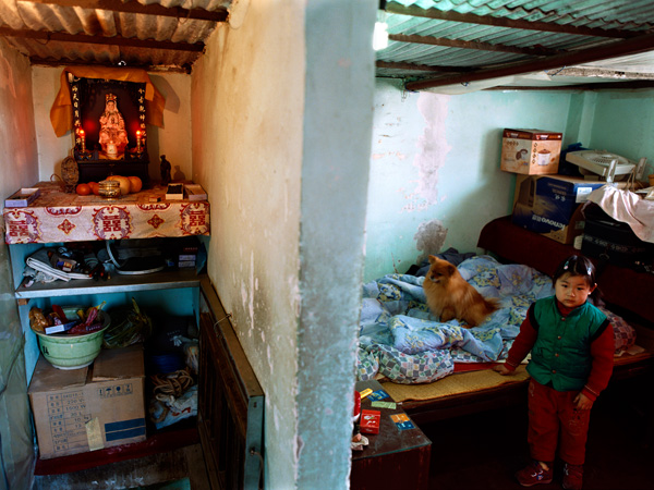 胡杨:很多人确实也谈到这个问题,他们之前问我说,你为什么能够进入到500多家人家去拍摄?《大众摄影》当时的主编高琴,她说这个选题太好了,要在杂志上号召各地的摄影人去拍某某人家,集合起来做一个《中国人家》。我说,Good Idea!后来真的号召了,很多人响应,但是做不出来。有人给杂志社写信、打电话问,胡杨的照片看上去这么简单,我们也会拍,为什么就做不出来?其实做这样的选题,不仅仅是摄影技术的问题。别人凭什么要在短时间里接纳一个陌生人?还是一个拿着照相机的人来到家里拍照片?可能我的沟通能力、交际能力是比较强一些,一方面我自己做过记者,也做过编辑,在电视台做过栏目专题,另外很重要的一点,我曾经自学过社会学、历史影像文献学、心理学,琢磨怎么和人打交道。我面对的第一扇门是被访者家里的门,第二扇是他们心灵上的门。
