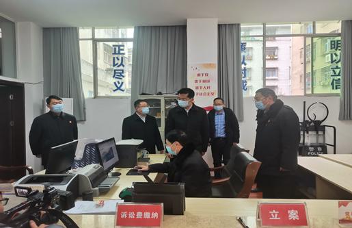 古熙书记与大家互致问候、亲切交谈,实地查看长安法庭诉讼服务大厅,详细询问了长安法庭立案受理、法庭人员配备、案件办理和干警工作生活等情况。古熙书记对长安法庭立足基层、服务人民、化解基层矛盾取得的成绩给予了充分的肯定,古熙书记勉励大家要继续立足基层、服务群众、为深化基层治理继续发力。长安法庭全体干警对古熙书记一行的深切关怀表示衷心的感谢,干警们纷纷表示在新的一年里,将继续奋力拼搏,撸起袖子加油干,为辖区经济、社会发展提供更加有力的司法保障。