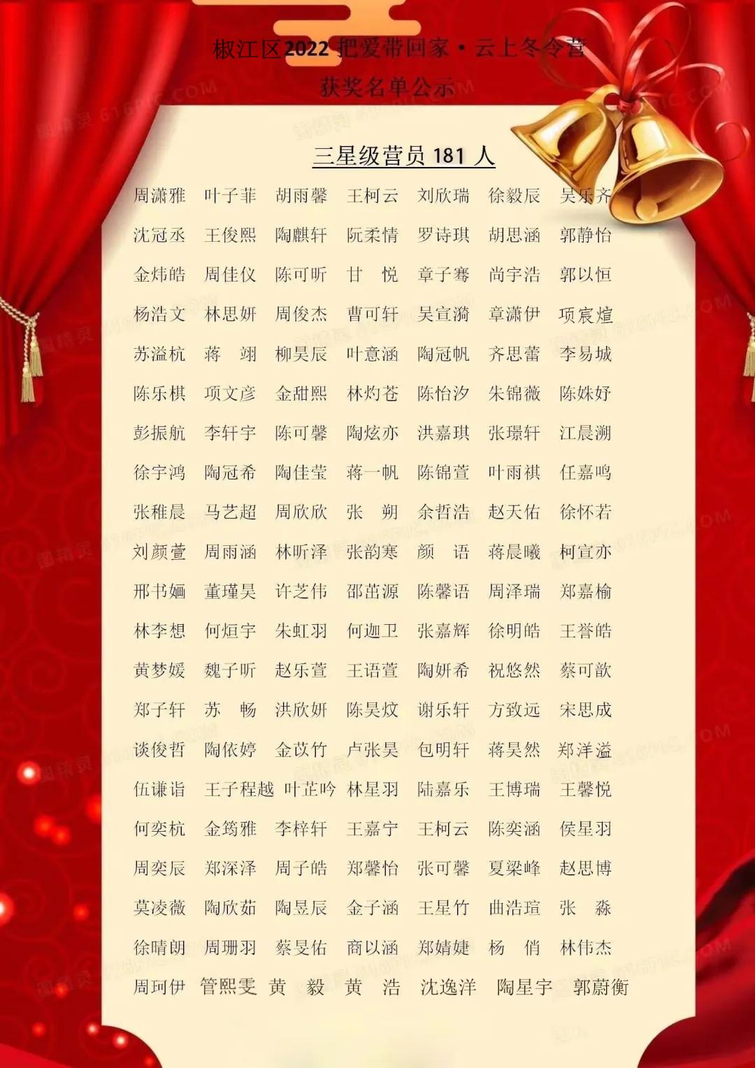 本期云上冬令营根据打卡积分制度评选出五、四、三星级营员