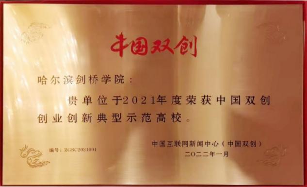 06 双创典范丨哈尔滨剑桥学院荣获2021年度“中国双创典型示范高校和典型人物”称号