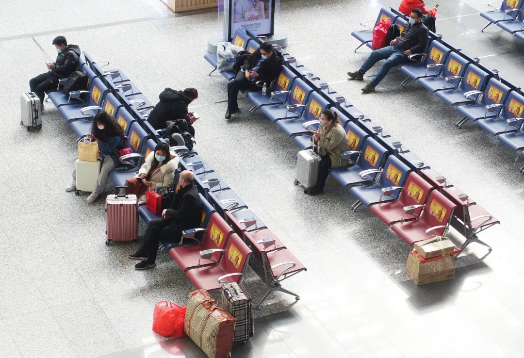 春运期间,到处都是返乡的旅客。/视觉中国有了这次经历,我对回家这事儿打起了十二分精神。早起吃早饭、服药,提前俩小时出门。在车站顺利地与同行的家人碰上了面,在列车上顺利地和好心的小姐姐互换了位置。