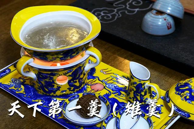 雉是古代最美丽的鸟,生长在徐州翟山森林里,肉含蛋白质高,“双足之雉,胜过四足之熊",大诗人屈原有句“彭铿斟雉帝何飨?"雉是滋补上品,配以古时的稷米,属粘性,烹羹稠,热量高。彭祖留下的雉羹,至今已有4000多年历史。朱诚心教授依古方改制,烹制雉羹时间有严格的要求,戌时末投料,寅时取料,选用陶制器皿,大陶罐套着小罐,徐徐煨成。