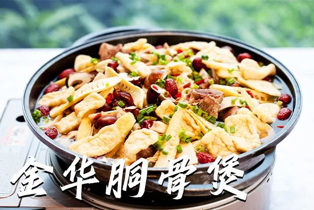 在桌上中央架上一口大锅,点火加热,不多时锅内翻滚的乳白色汤汁便会散发出浓郁的肉香,这是金华胴骨煲的标配。吃煲先喝汤,化在汤中的肉香和渗出骨头的精髓在红枣、枸杞、香葱的衬托下清甜可口。品汤,剔肉之后,再用吸管戳破骨头,就着汤,吸食其中的骨髓才是吃胴骨煲的高潮。
