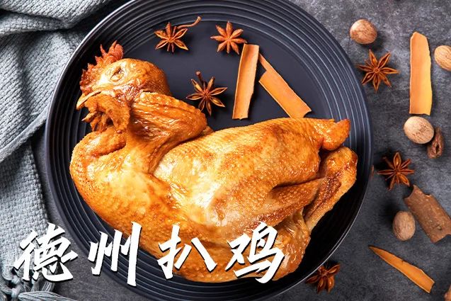新年吃鸡,大吉大利。德州扒鸡制作技艺为国家非物质文化遗产。德州扒鸡是中国山东传统名吃,鲁菜经典,肉质鲜嫩,清淡爽口,脯肉形若银丝,柔而不韧,骨节香酥,热中一抖,骨肉分离,被誉为“天下第一鸡”。